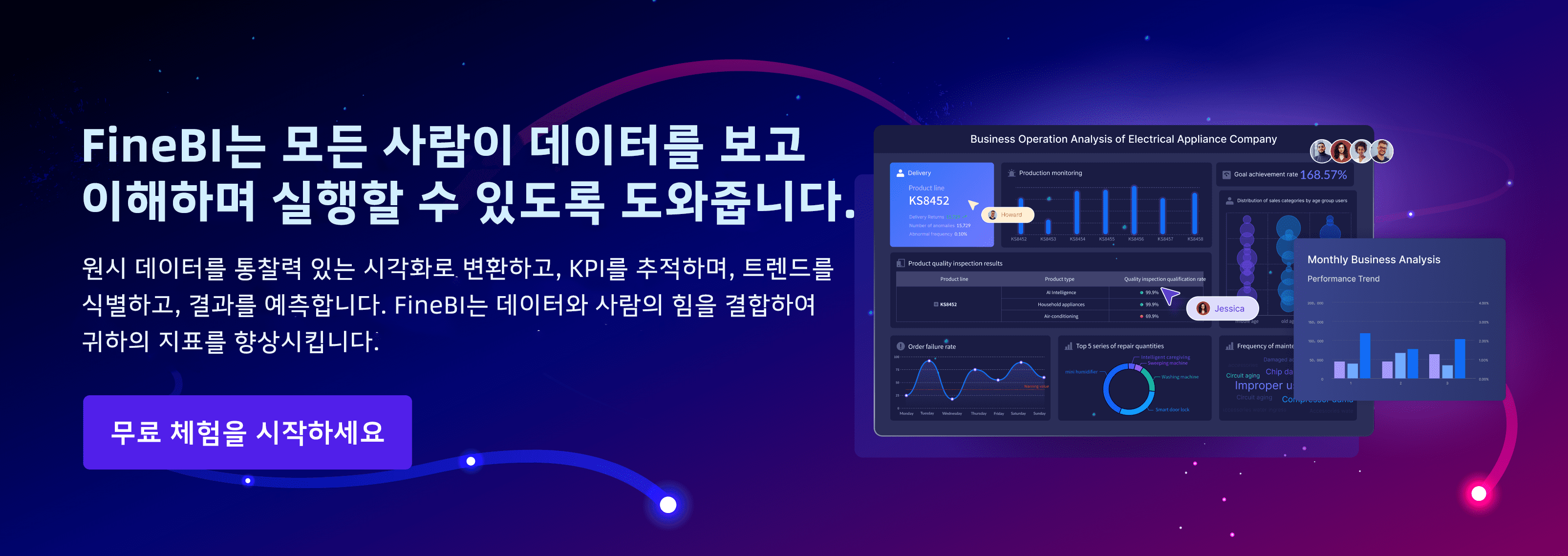 이 경우 FineBI와 같은 BI 도구를 참고해 엑셀 기반 대시보드의 확장 방향을 검토할 수 있다.
