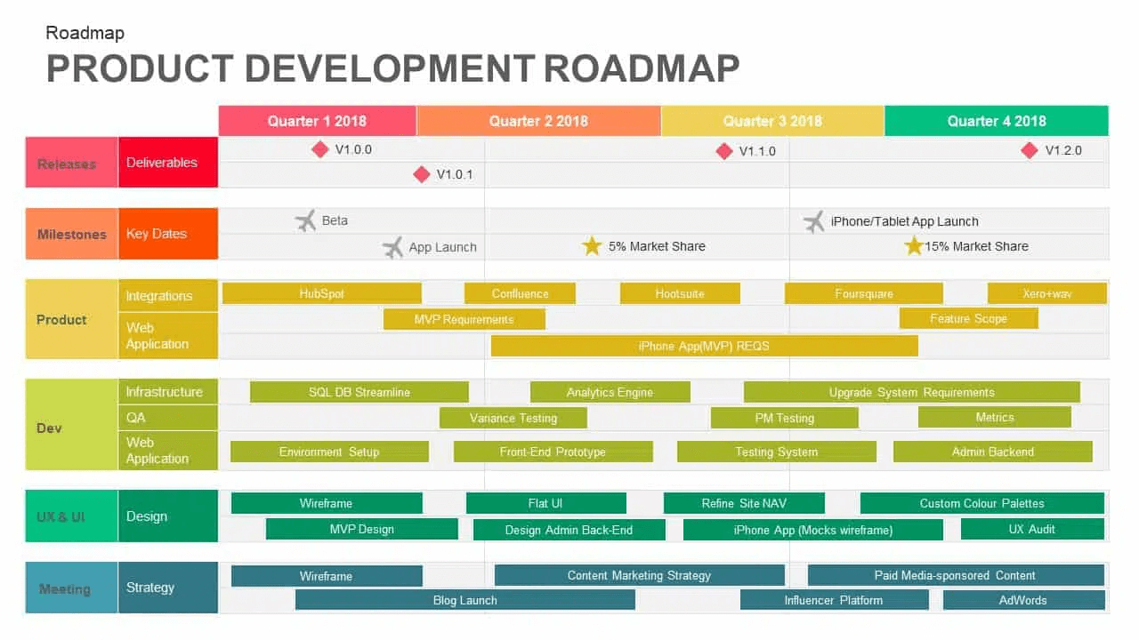 예를 들어, 마케팅 부서는 로드맵에 명시된 제품 출시 일정에 맞춰 캠페인 계획을 세우고, 생산 부서는 그 일정에 맞춰 생산 계획을 조정하는 식으로, 모든 부서가 통합된 정보를 바탕으로 협업할 수 있습니다. 이러한 방식은 로드맵을 보다 실질적이고 효율적인 도구로 만들어 주며, 실시간으로 전략을 수정하고 대응할 수 있게 합니다.